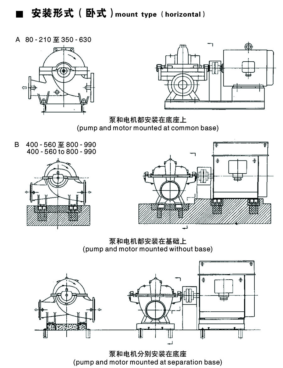 As bombas Type WS são do tipo novo de bombas bipartidas centrífugas de sucção dupla de estágio único com alto desempenho. Eles são amplamente utilizados na entrega de líquidos para a planta de água, sistema de água de circulação de ar condicionado, sistema de rede de abastecimento de água aquecida, construção, sistema de bombeamento de drenagem, estação de energia, sistema de abastecimento de água industrial, sistema de navio, mina e etc. As bombas são produtos avançados desenvolvidos a partir do tipo SH. S, SA, SLA, bombas SAP.